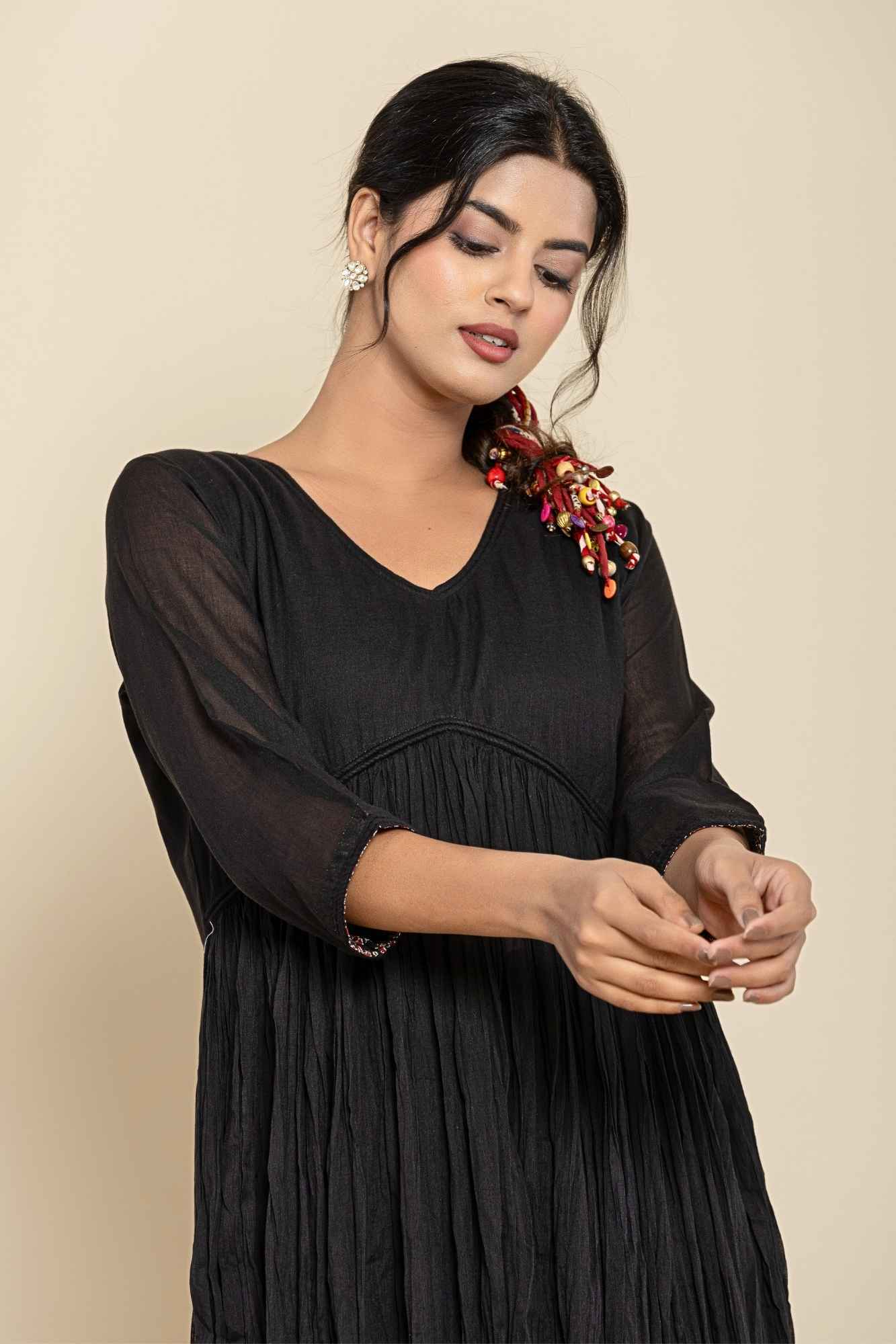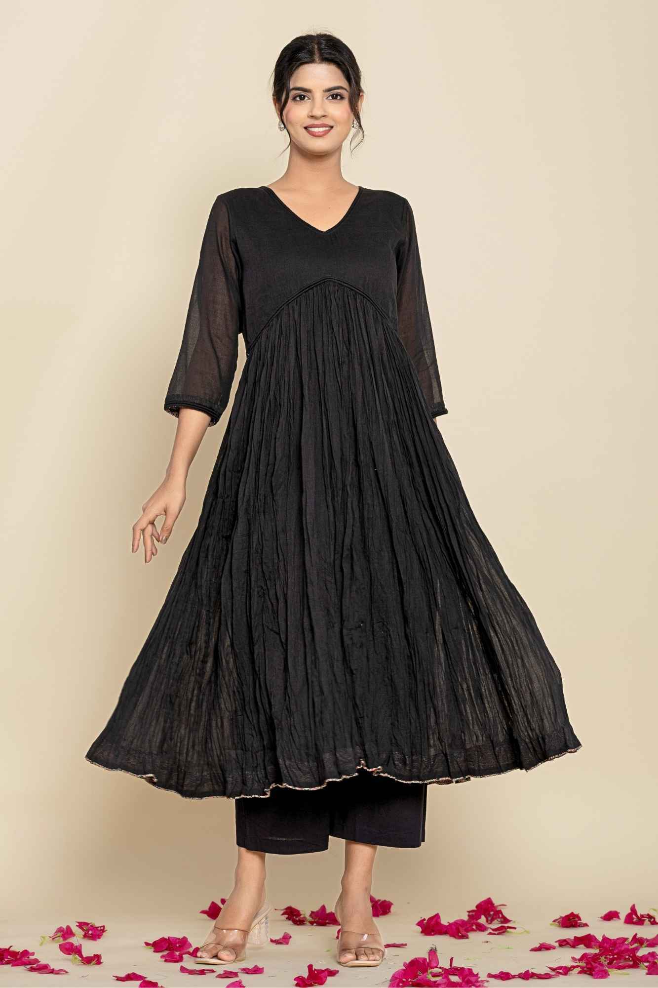(Set of 2) Naksh Black Cotton Gathered Kurta And Pants