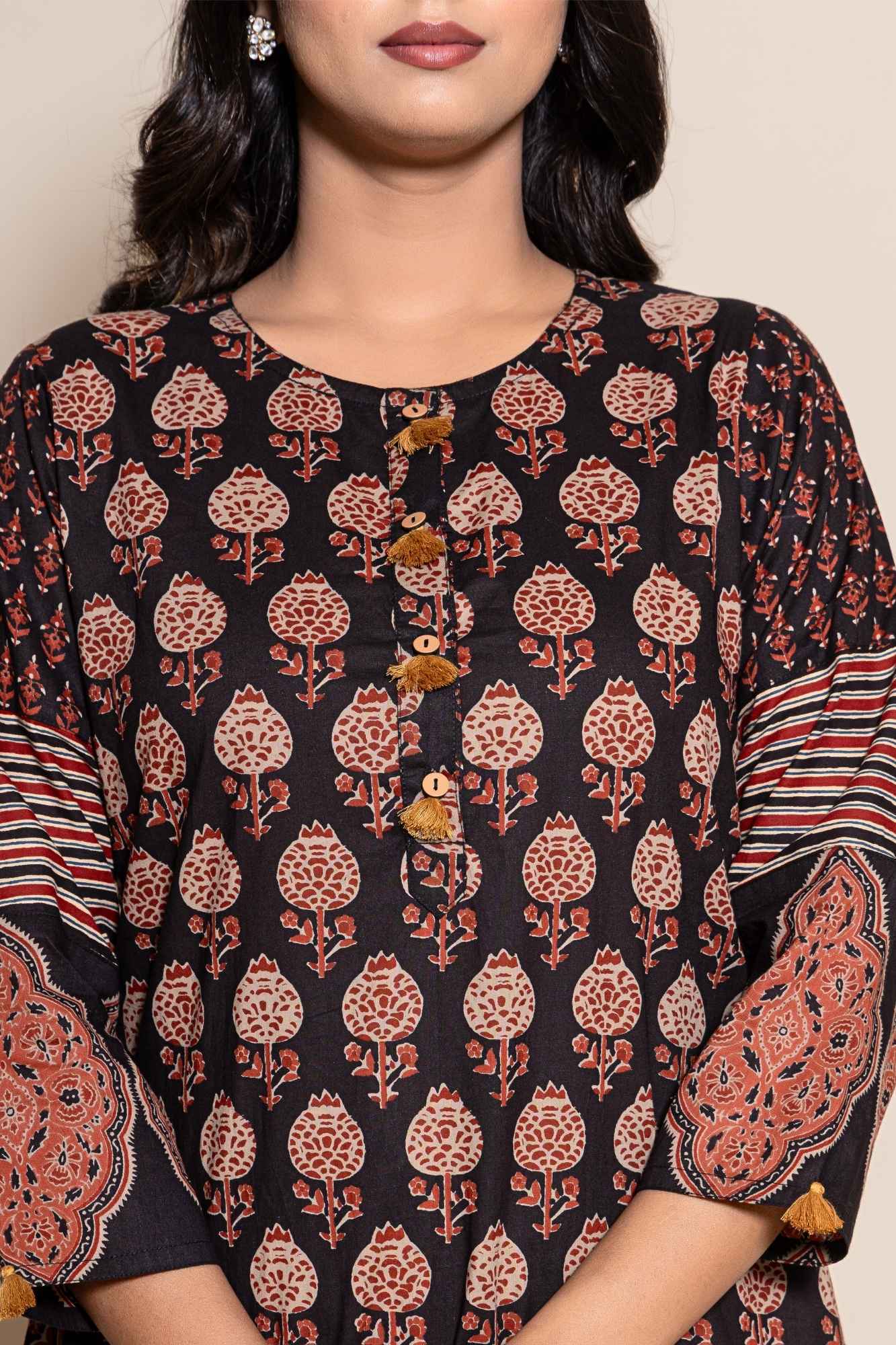 (Set of 2) Naksh Black Cotton Straight Printed Kurta and Yellow Pants