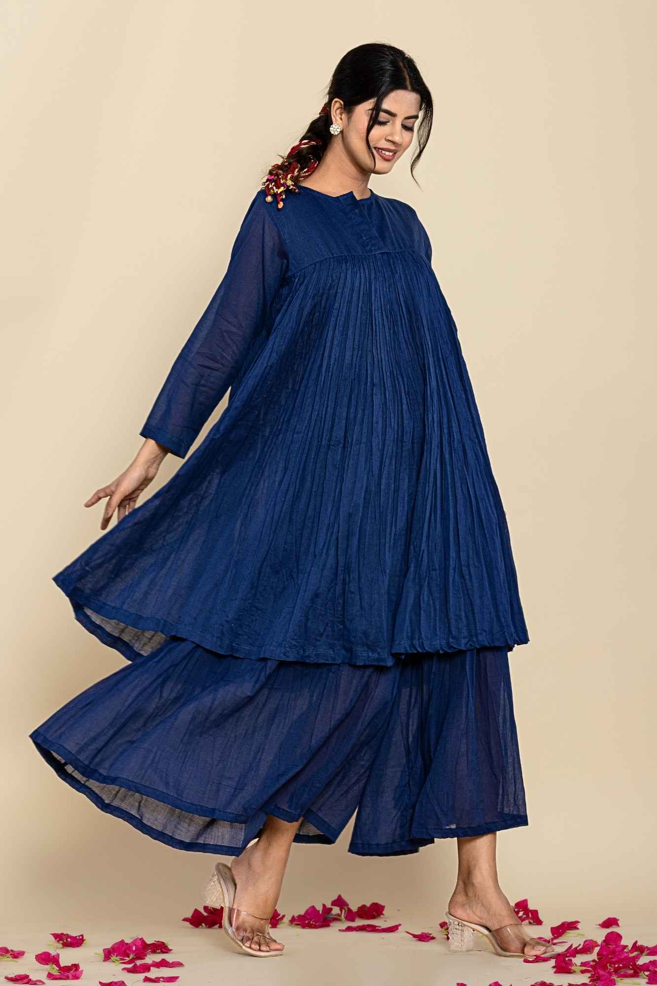 (Set of 2) Naksh Dark Blue Solid Voile Gathered Kurta And Sharara