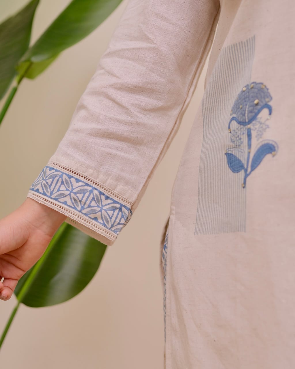 Tritiyaa Cotton Flex Embroidered Co-ords Set with Floral Motifs & Sequin Work – Elegant Ethnic Wear for Festive & Casual Style
