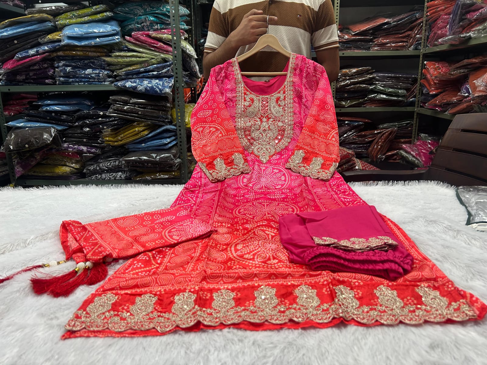 Tritiyaa Elegant Chinon Straight Kurta Set with Heavy Embroidery & Mirror Work | Kurta Pant Dupatta